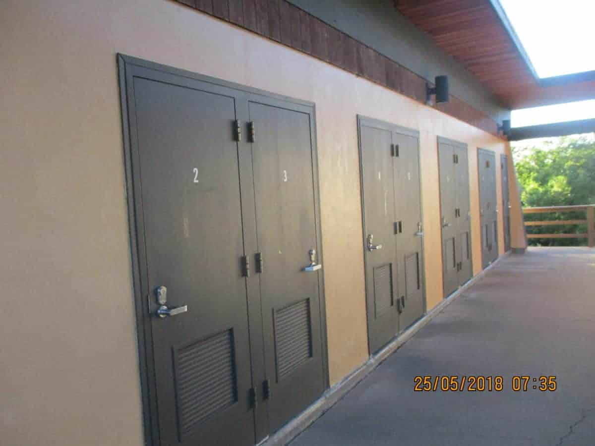 The bathrooms at this campground are nice and clean! There is also a large store, with an ice-cream machine, yay! Here are the showers. Notice the graphics on the far wall. There is a crossed-out graphic of a woman squatting in the shower to go potty. Does that really happen?