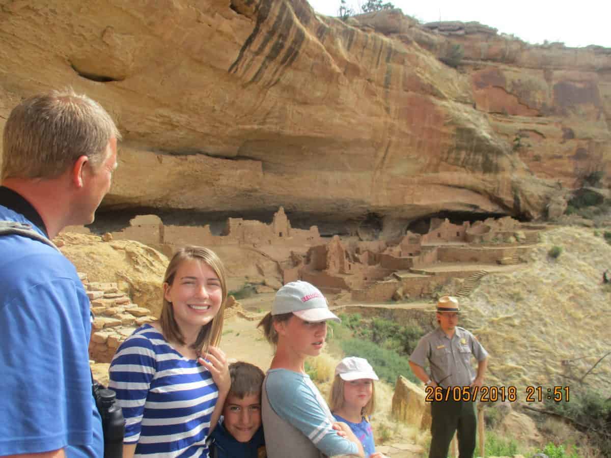 Mesa Verde, in southwest Colorado, adds adventure and excitement to the tours of the ruins. Because most of the ruins in this park were built in crags in the cliff face, below the surface of the mesa, they are hard to get to. Thus, the tours are much more adventurous than in the other parks we visited. All the tours at Mesa Verde are ranger-guided instead of self-guided, so you can’t get up close and personal with the ruins. The park rangers ask that you not touch the ruins at all.