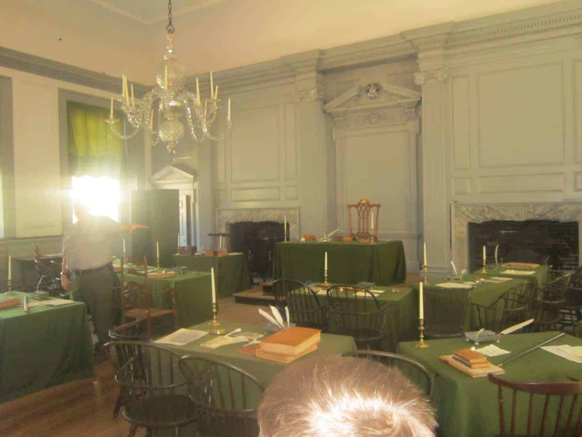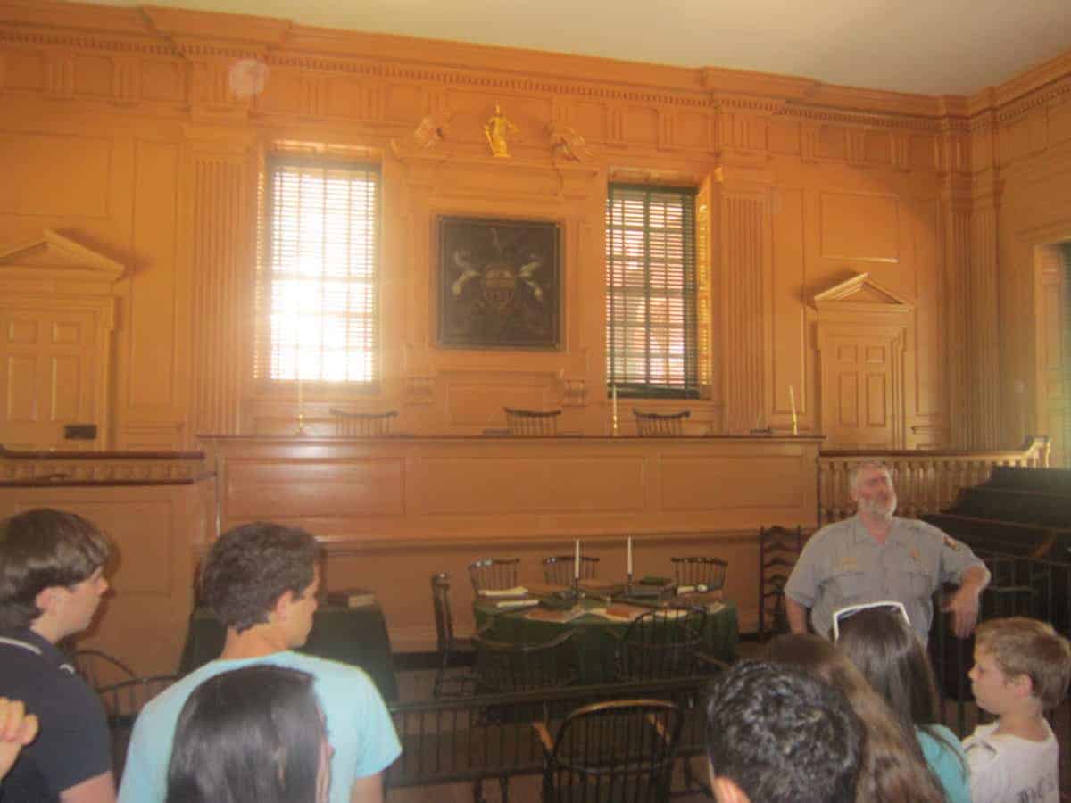 We all loved Independence Hall. It is replete with a dignified spirit of miraculous Godly intervention. The sunrise chair in the first room to the right is the honest-to-goodness original chair that George Washington sat in during the Constitutional Convention; the one Benjamin Franklin pointed toward, observing that painters had found it difficult to distinguish in their art a rising sun from a setting sun. He went on to say:Â “I have often … in the course of the session … looked at that sun behind the President without being able to tell whether it was rising or setting. But now at length I have the happiness to know it is a rising and not a setting sun.”