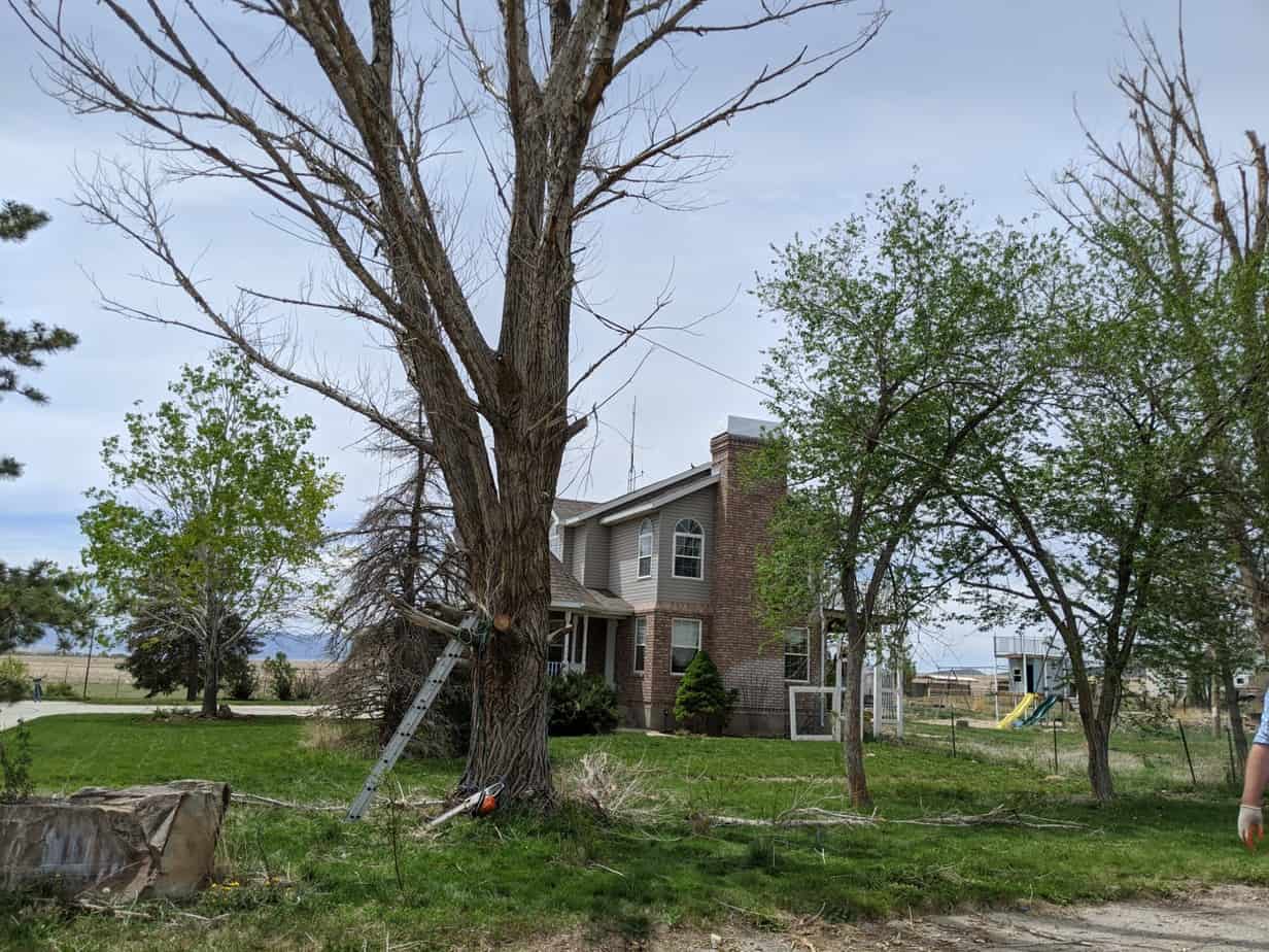 The one thing Cottonwood trees have going for them is that they grow super fast. Ours were probably about 20 years old, since that’s how old our house is, and they were already 80′ tall behemoths.
