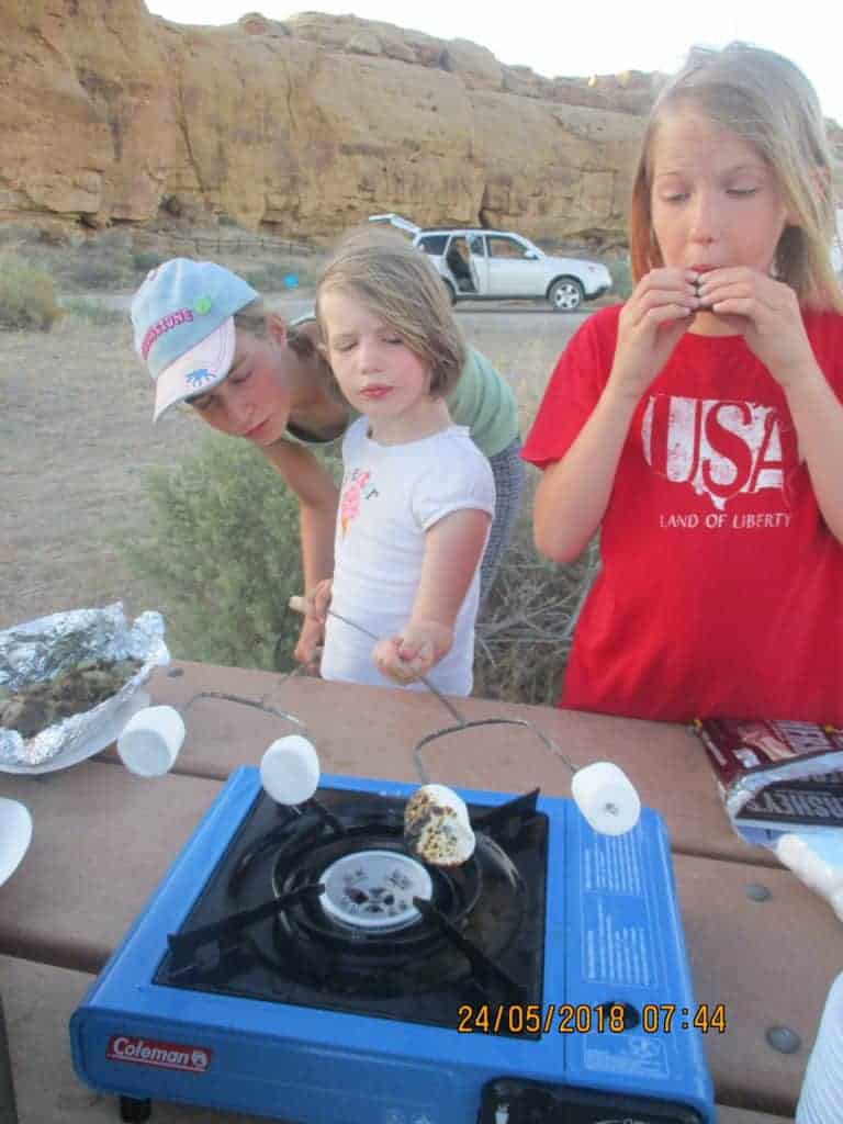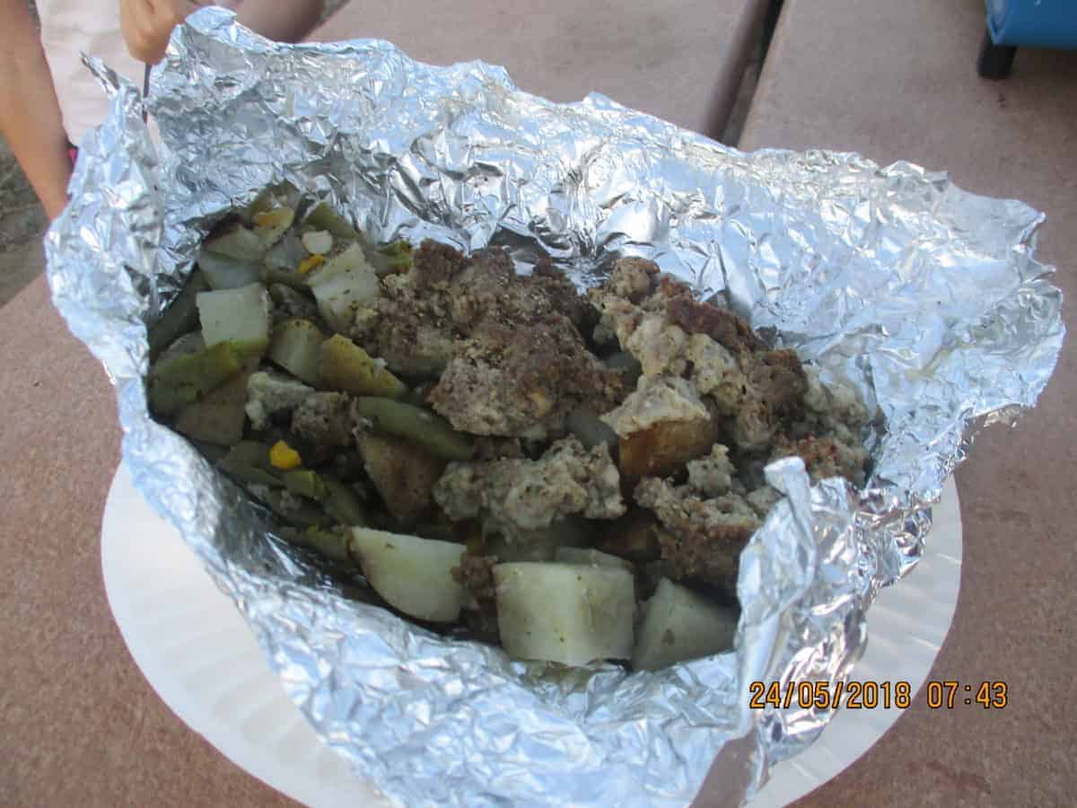 So we heated our tin foil dinners (and roasted marshmallows for s’mores) on the camp stove, had dinner, explored a little, then went to bed.