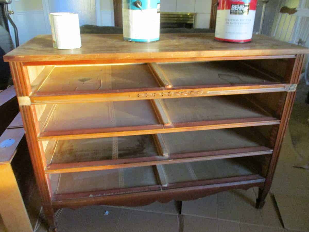 Three years later, my oldest got married and they needed a dresser. I gave them ours because we hardly used it and didn’t really need it, but then I regretted that it left a visual hole in my bedroom. So I remembered this old dresser and decided to fix it up.