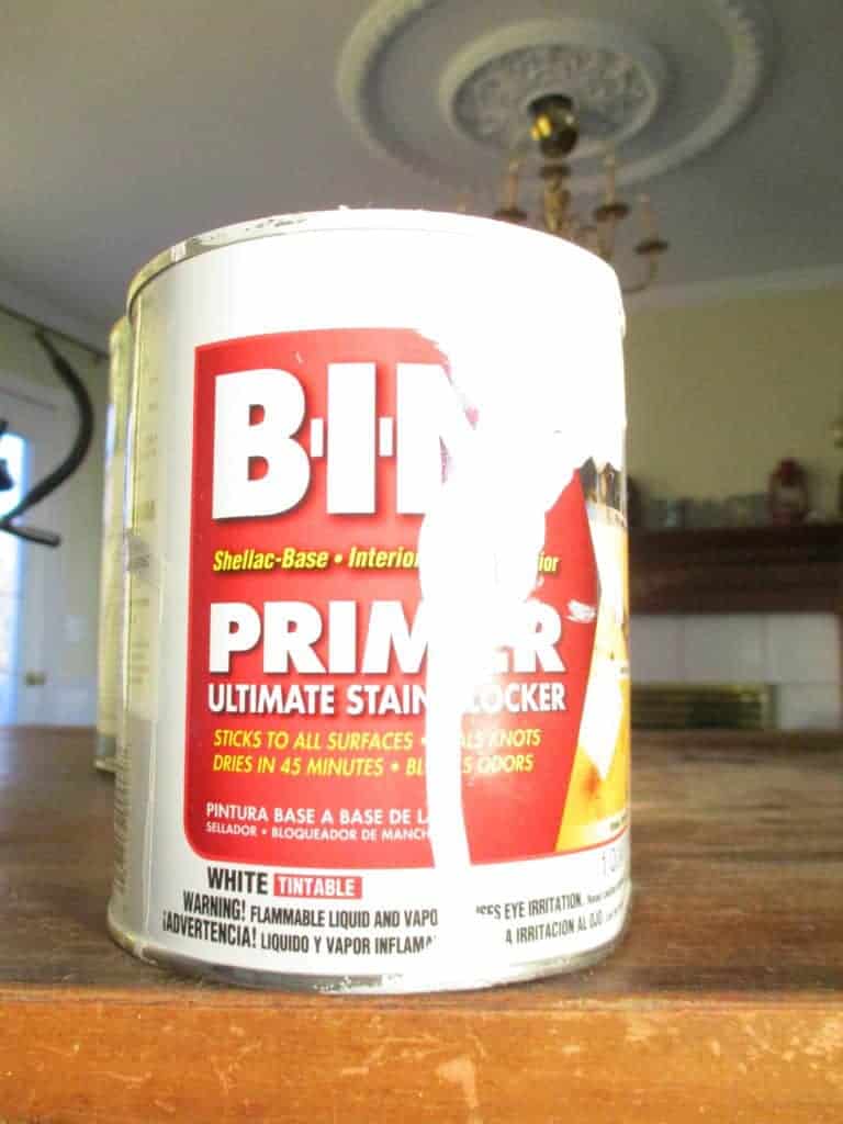 Once your furniture is clean, dry, sanded and dust-free, it’s time to prime. You can’t just slap on a coat of paint and call it a day. It will peel and chip, I promise. My favorite primer is BIN primer by Zinsser, because it is alcohol-based and adheres to everything. Seriously, don’t skip cleaning and priming if you want your project to look nice and last. If you’re going for the shabby chic look, by all means skip the primer, ha, ha!