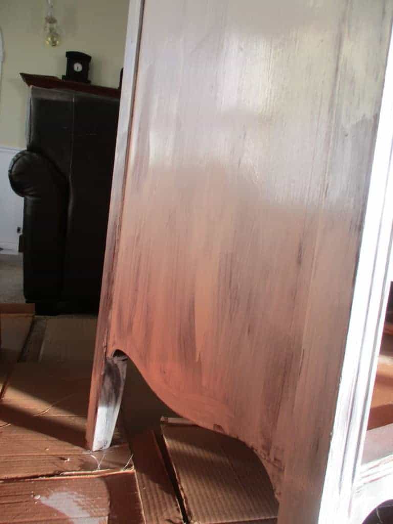 Old varnishes are especially prone to bleeding. It bled through the primer on the top, where the varnish was thicker. I added another coat of primer (I usually just do one coat) to the top in order to really seal that varnish so I won’t have any problems down the road.