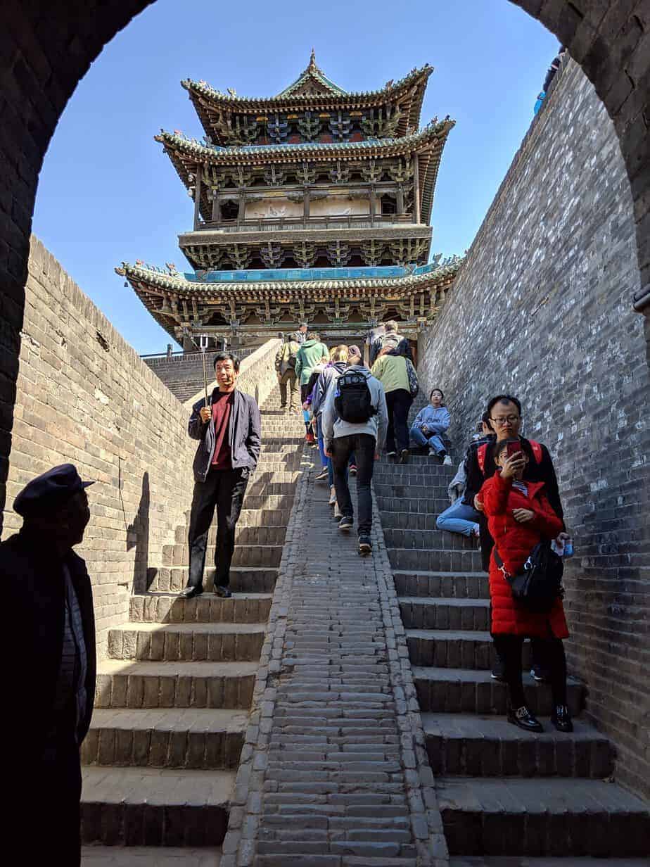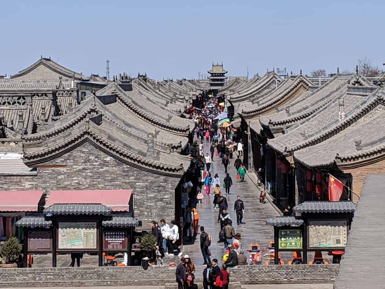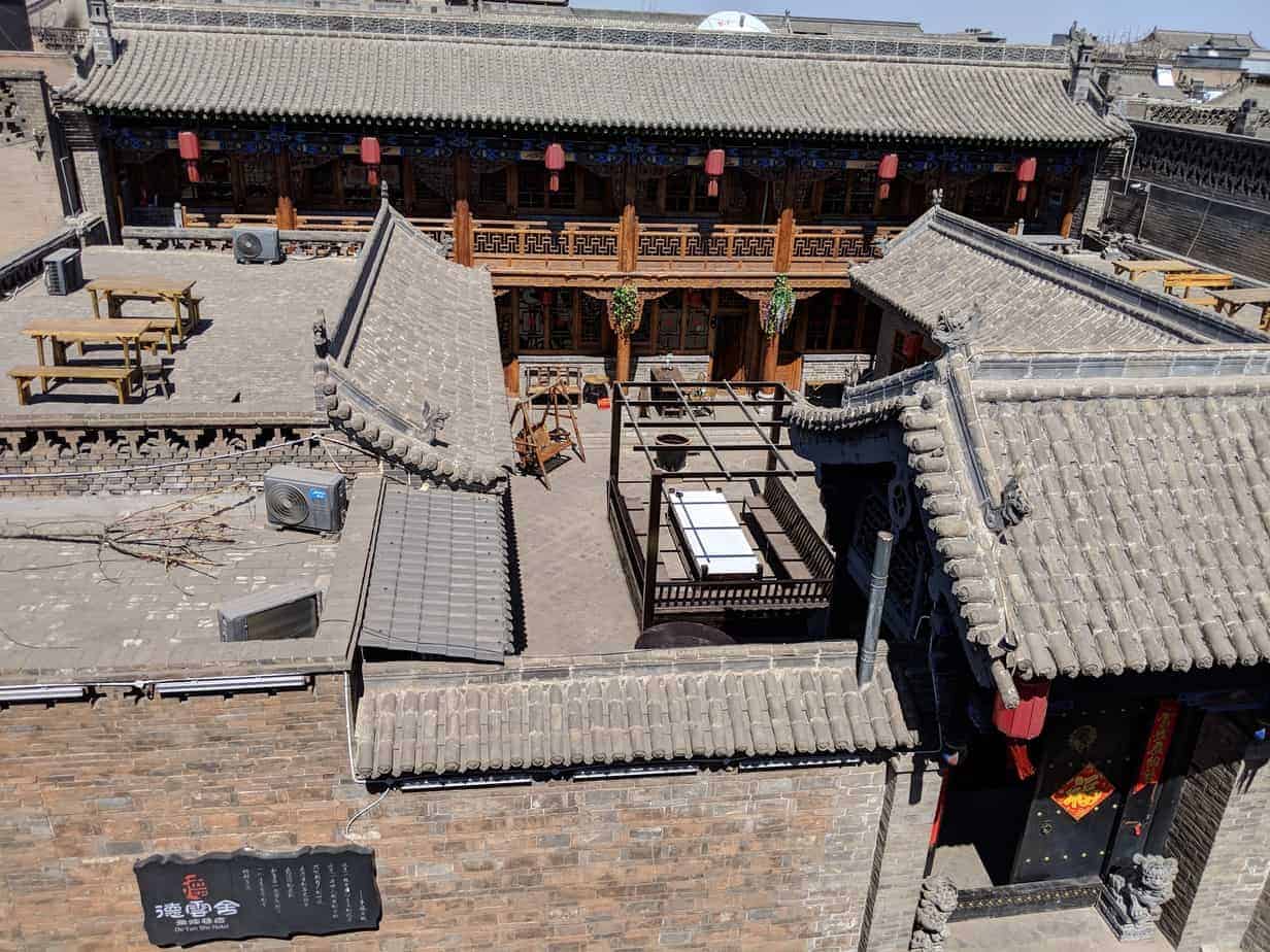 From the top you can see the patchwork of ancient rooftops across Pingyao. You can see down into a few of the streets and properties, which gives you a good idea of the cities layout and how the people live.