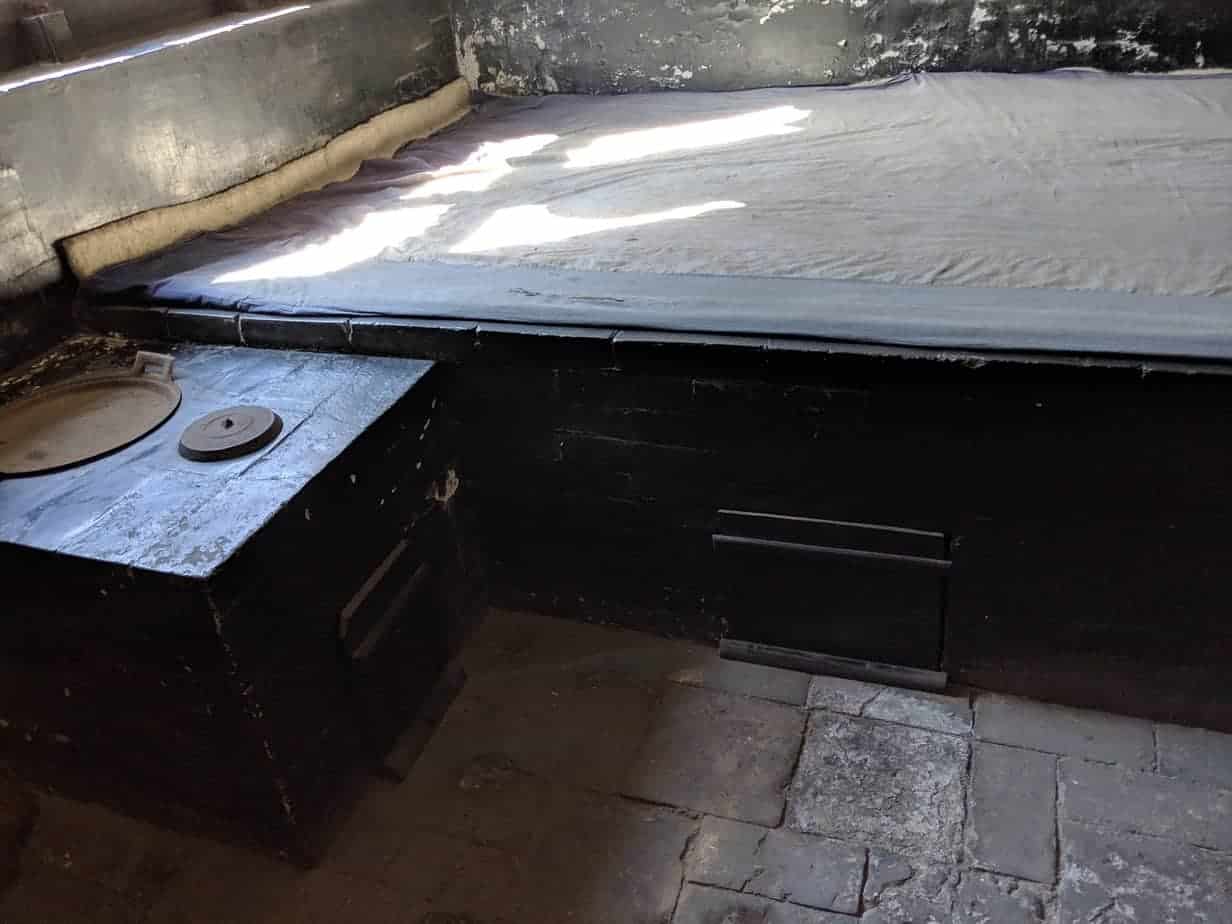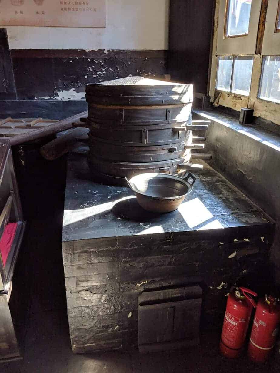 I don’t know why there were living quarters at the bank, but that’s where I took the photos above of the kang. A kang is a platform bed made of bricks warmed by a wood stove next to the bed. The “chimney” of the wood stove runs through the brick before exhausting outside, keeping the bricks toasty warm for the bed’s occupants. But can you imagine sleeping on bricks?