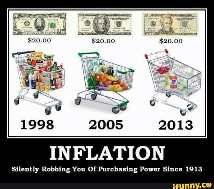 The government keeps telling us that inflation is less than 2% annually and that a limited amount like that (which they are carefully controlling) is necessary for the growth of the economy.