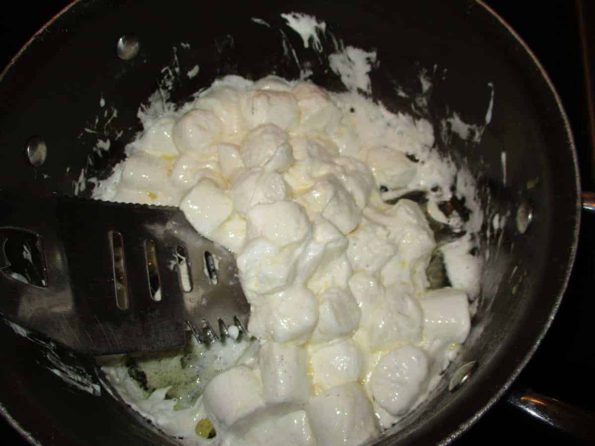 - Add Mini Marshmallows, stir until they are completely melted.Â