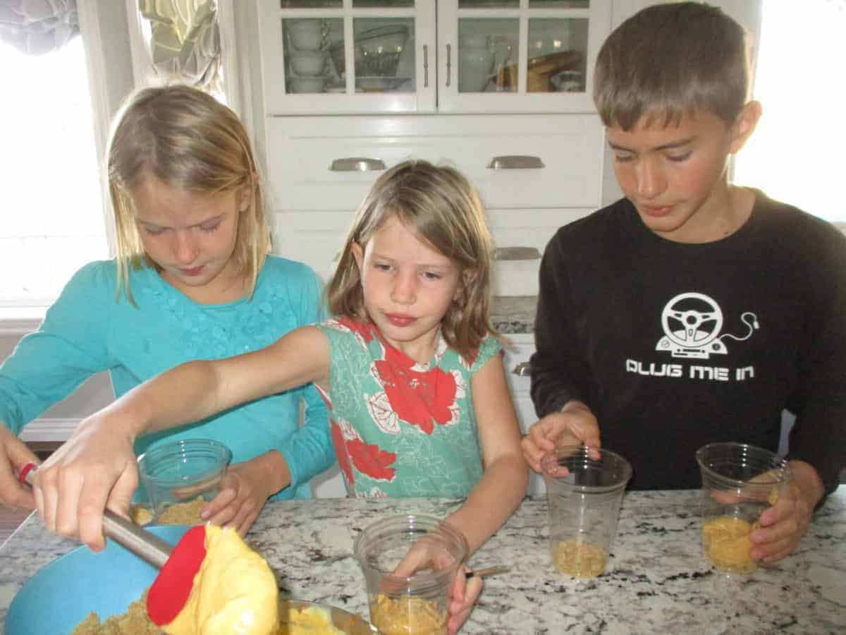 - Layer the crushed graham crackers and the filling in a plastic cup.