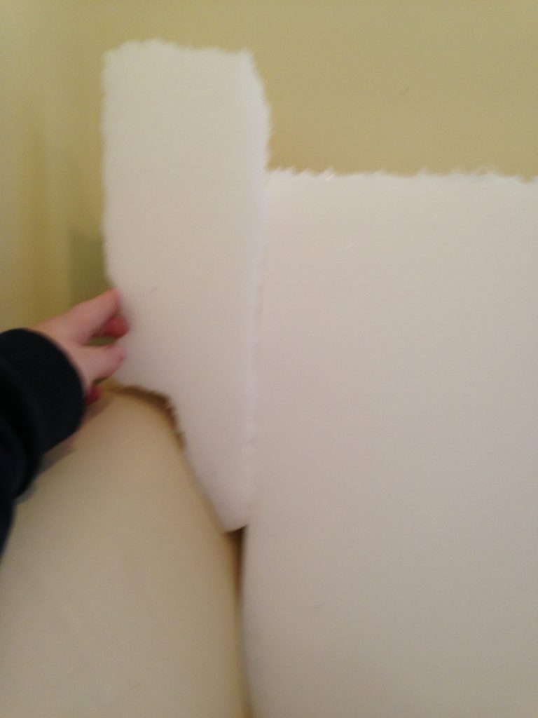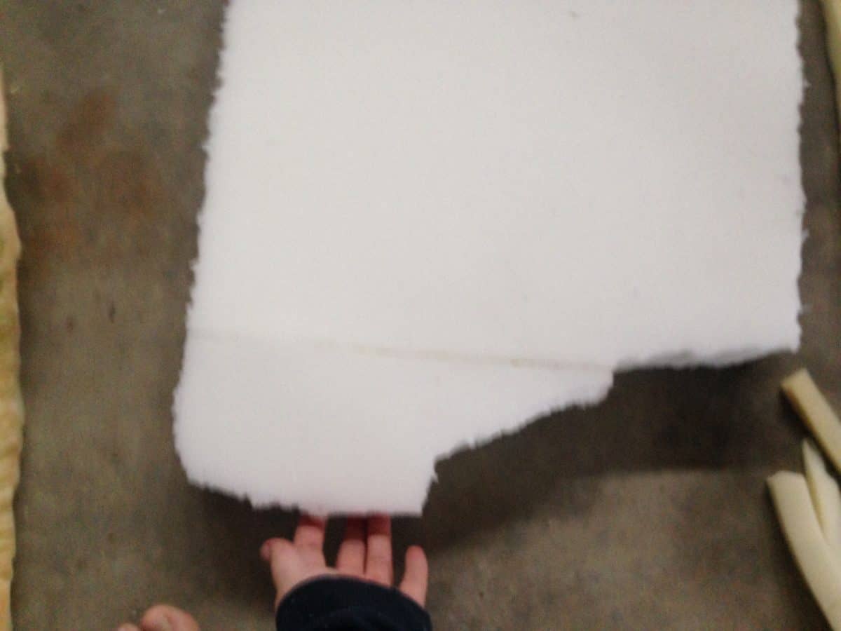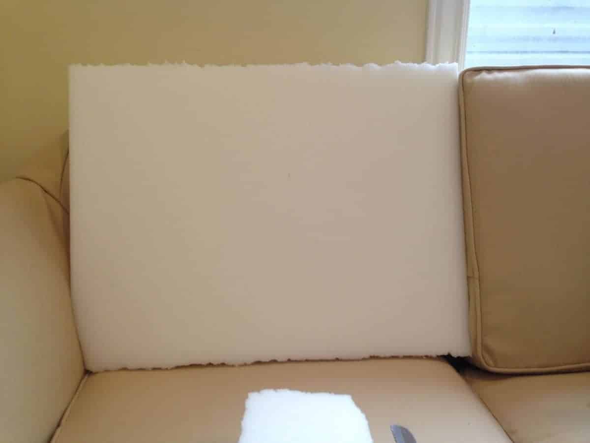 - You will need high-density foam to fill your new cushions. I have found Home Depot to provide the cheapest, good quality 3″ foam. I glue together the 3″ foam, to create 6″ thick foam, which I then wrap with Dacron for seat cushions. I chose to make my seat-back cushions only 5″ thick, and they are comfier a little less dense, so I sandwich 3″ high-density foam (the stuff that is in the seat cushions) between 2 pieces of 1″ thick low-density foam, which I purchase here. Figure out how many new cushions you will need to make and what size, and order the foam so you will have it when you are ready to start sewing.