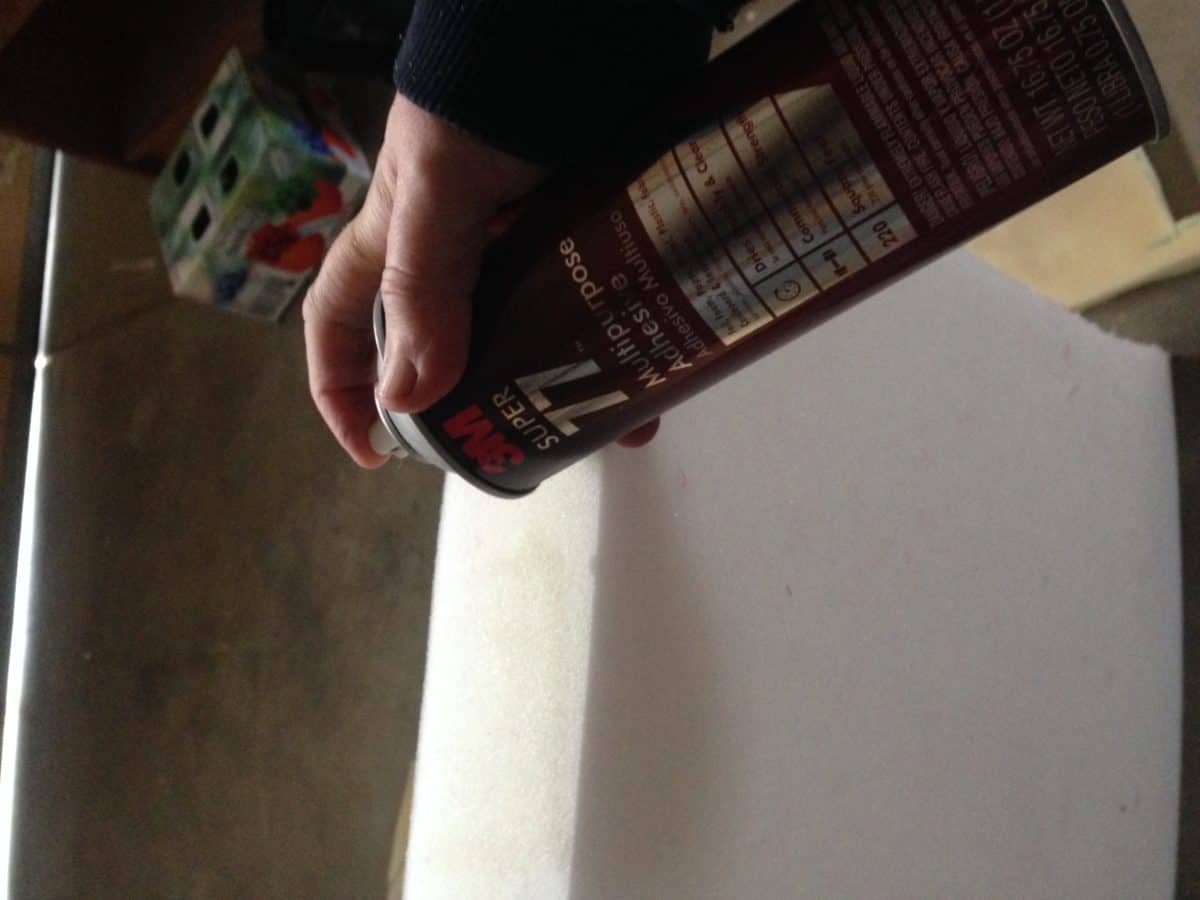 - You will need to make new cushions for the extensions you added. They should match the size and thickness of your original cushions if you made your extensions that size (which you should, because it makes everything easier and more attractive). My original cushions were 6″ thick, so I glued (using 3M spray adhesive–make sure it will adhere to foam) two 3″ foam slabs together to match the thickness. Once I wrapped the new cushions in Dacron they looked just as great as my old cushions.